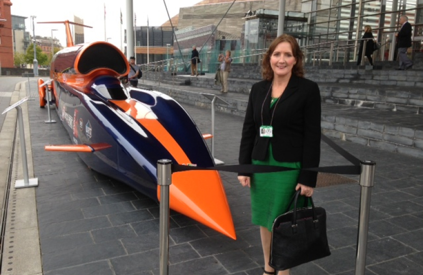 Assembly Member for Aberconwy, Janet Finch-Saunders has recently attended the exhibition of a "Bloodhound Super Sonic Car" at the Senedd in Cardiff Bay. The car is part of an attempt to break the world land speed record in South Africa.