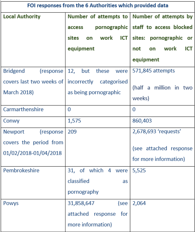 “However, these figures do raise concerns about the use of publically procured IT equipment. Blocked sites are blocked for a reason – often security related. Attempts to access these have the potential to compromise the confidentiality and integrity of data held by an authority, and I trust that local authorities are taking the appropriate action where their figures flag up multiple access attempts.