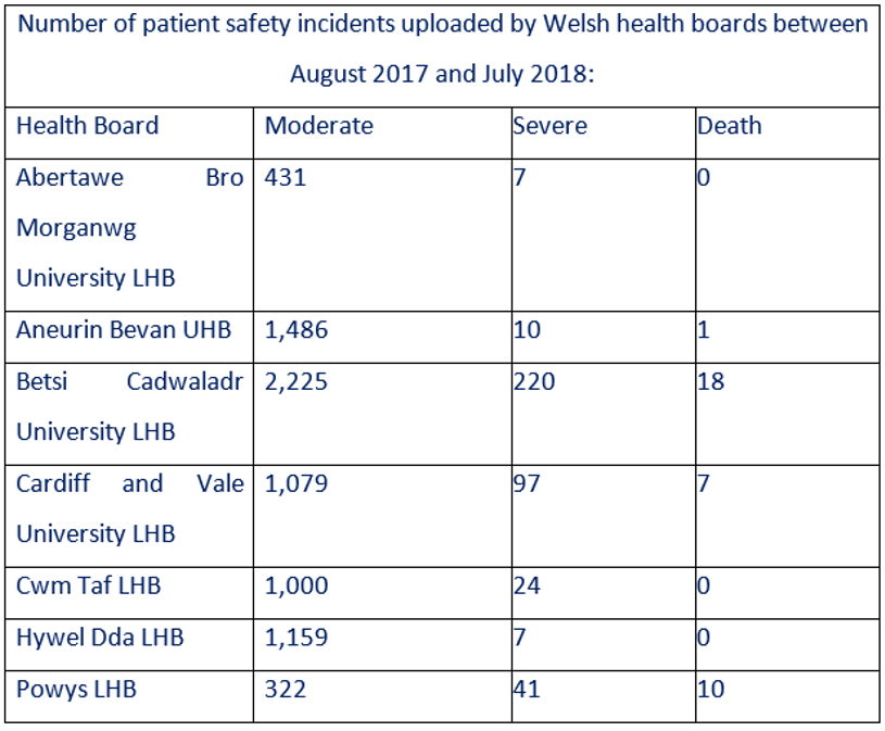 Commenting on the number of incidents reported by Welsh health boards to the National Reporting & Learning System (NRLS) between August 2017 and July 2018, Janet said: