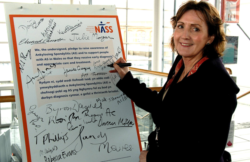 “I was pleased to welcome NASS to the Senedd as we all have an important role to play to raise awareness of Ankylosing Spondylitis. Early diagnosis and good treatment is vital as the average time until diagnosis in Wales is eight and a half years, which can severely effect the impact and effectiveness of treatment.”